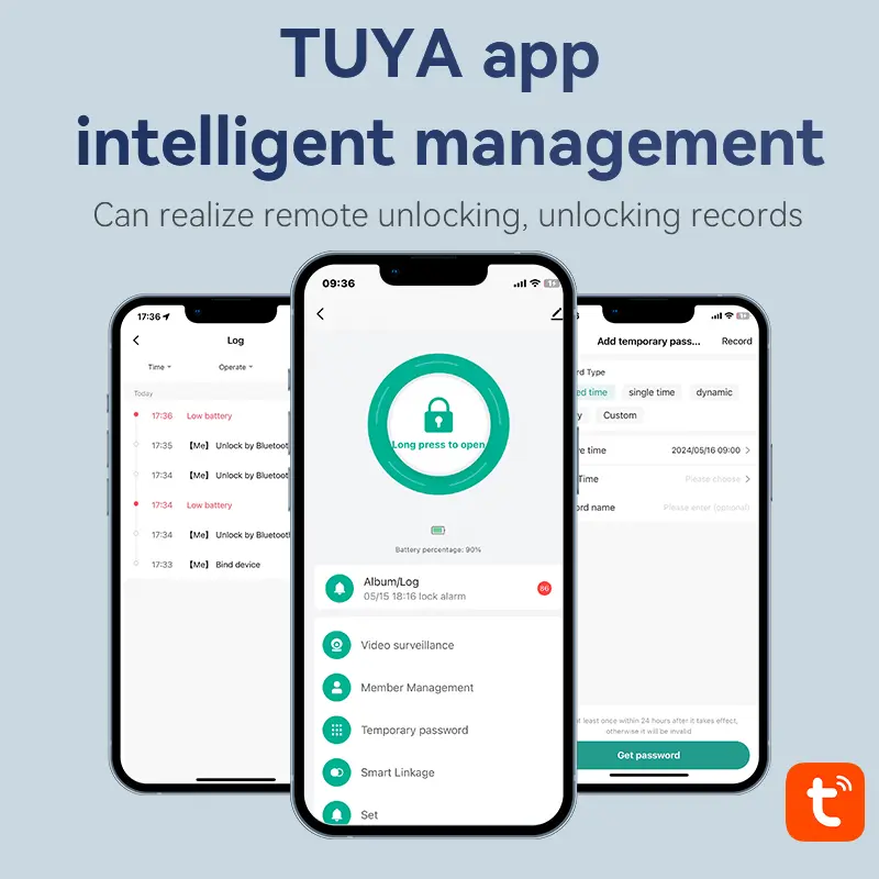 - Συμβατικές μέθοδοι: Διατηρεί κωδικούς πρόσβασης, φυσικά κλειδιά, κάρτες IC και προσωρινούς κωδικούς για διαφορετικές ανάγκες των χρηστών και διπλή ασφάλεια.